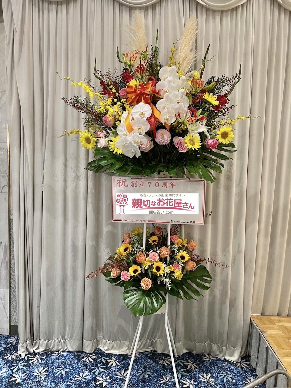 周年祝い花(スタンド花)山形県新庄市 ニューグランドホテル新庄『新庄自動車株式会社 創立70周年式典』新庄自動車株式会社 様