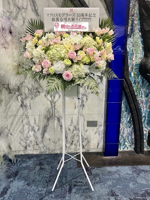 【造花×生花】祝花(スタンド花)東京都港区海岸 ニューピアホール『マクロスモデラーズ 10周年記念 総員合唱共闘ライブ!!!!!!!!』会場届け