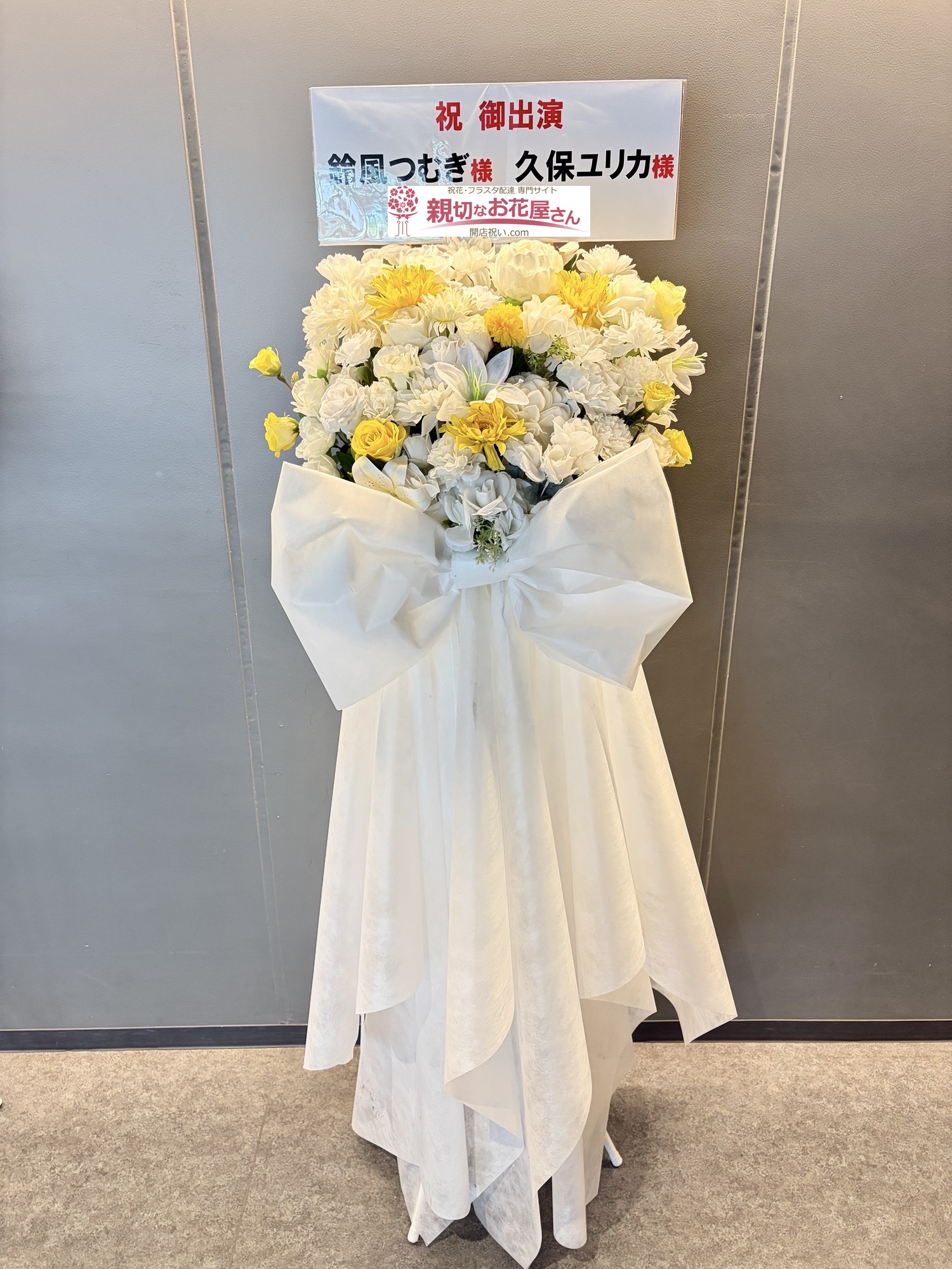 今井優希 様『僕が見たかった青空 超雲組公演 でらっくす』大手町三井ホール(千代田区大手町)公演祝い花(スタンド花)【生花×造花】