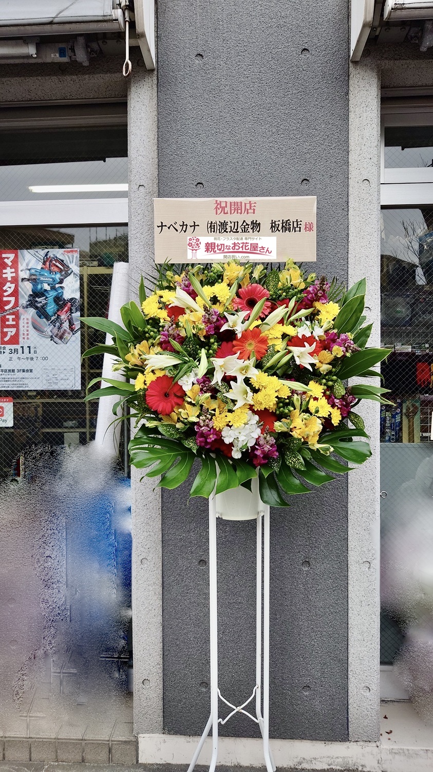開店祝い花(スタンド花)板橋区大谷口 ナベカナ(有)渡辺金物 板橋店 様