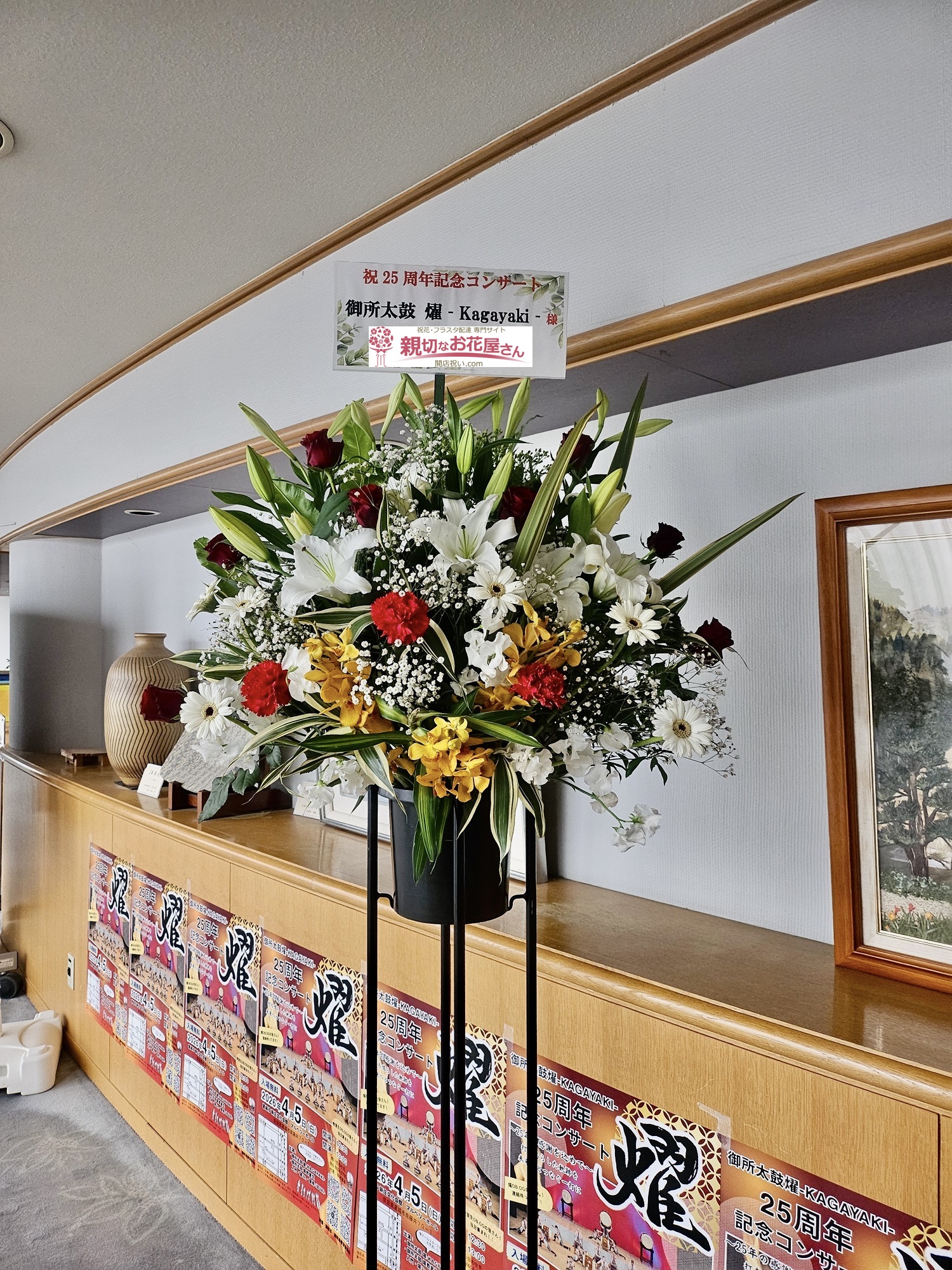 御所太鼓 燿 – Kagayaki – 様『御所太鼓 燿 – Kagayaki – 25周年記念コンサート』新庄文化会館(葛城市)公演祝い花(スタンド花)