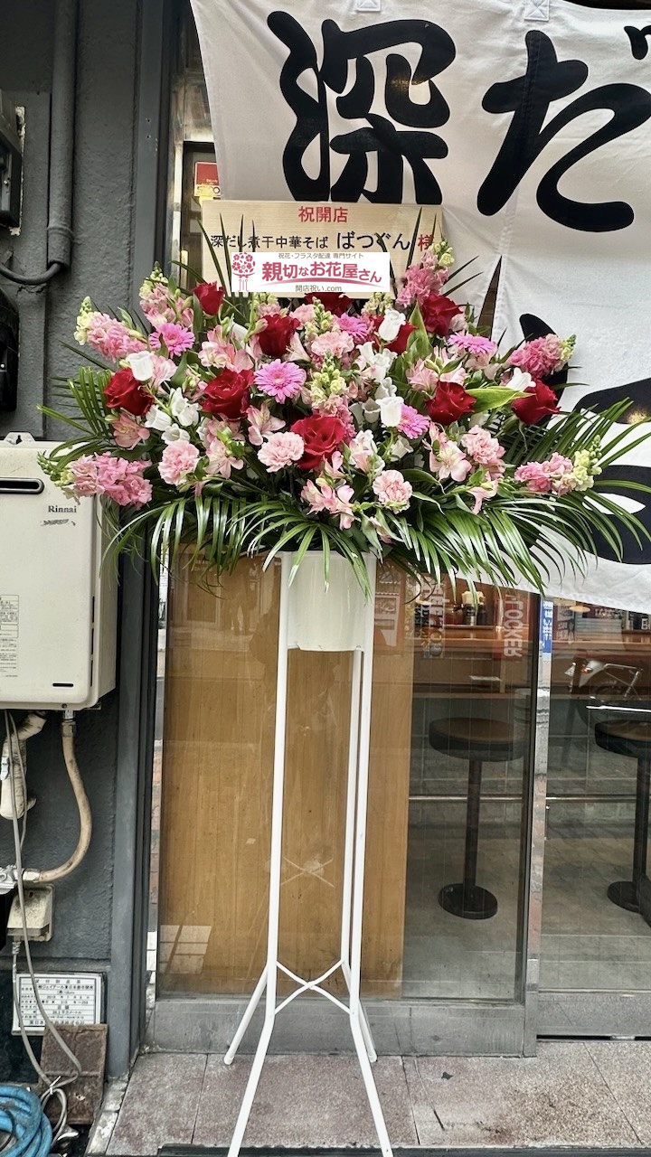 開店祝い花(スタンド花)荒川区西日暮里 深だし煮干中華そば ばつぐん 様