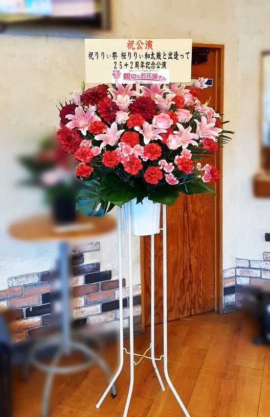 公演祝い花(スタンド花)埼玉県川口市 西川口Live House Hearts『りりぃ祭 桜りりぃ和太鼓と出逢って25+2週年記念公演』会場お届け