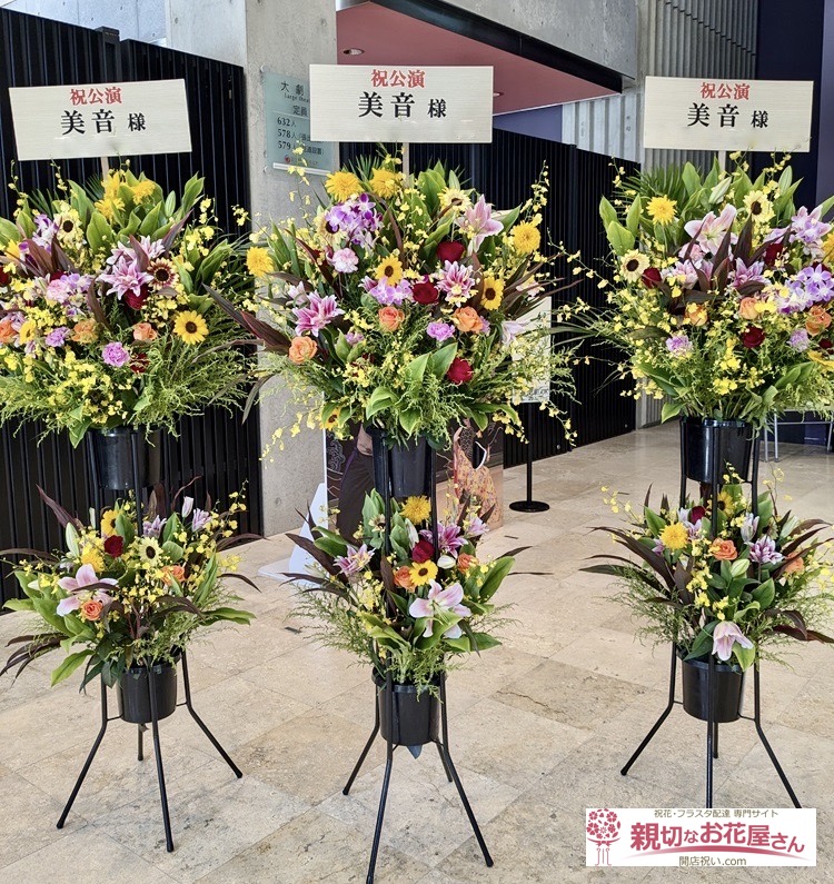 公演祝い花(スタンド花・3基)沖縄県浦添市 国立劇場おきなわ『美音ソロコンサート 奏結~Kanayui~』美音 様