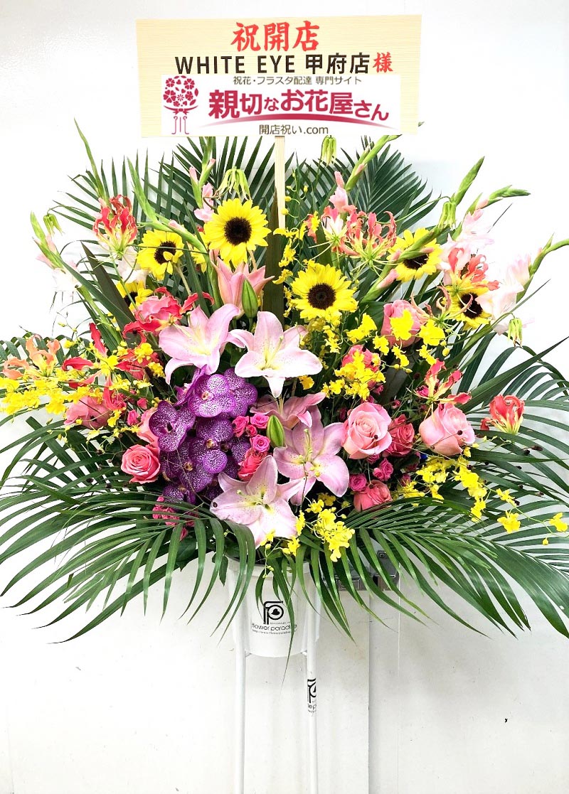 開店祝い花(スタンド花)山梨県甲府市 WHITE EYE 甲府店 様(アイブロウサロン)