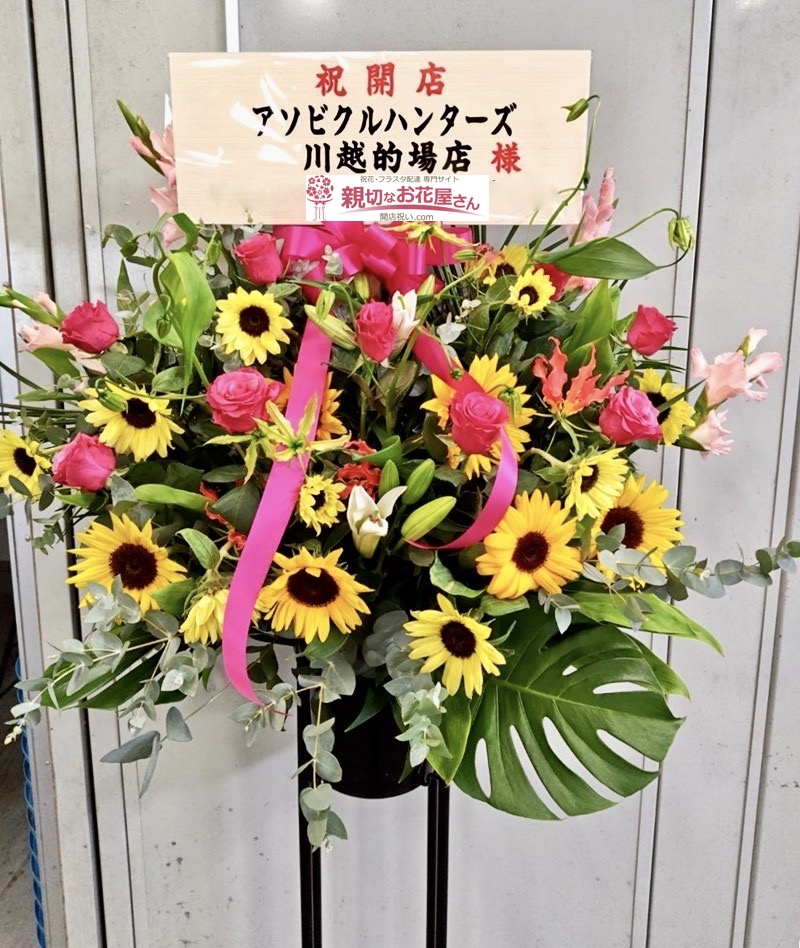 開店祝い花(スタンド花)埼玉県川越市 ホームセンターコーナン川越的場店内 アソビクルハンターズ 川越的場店 様