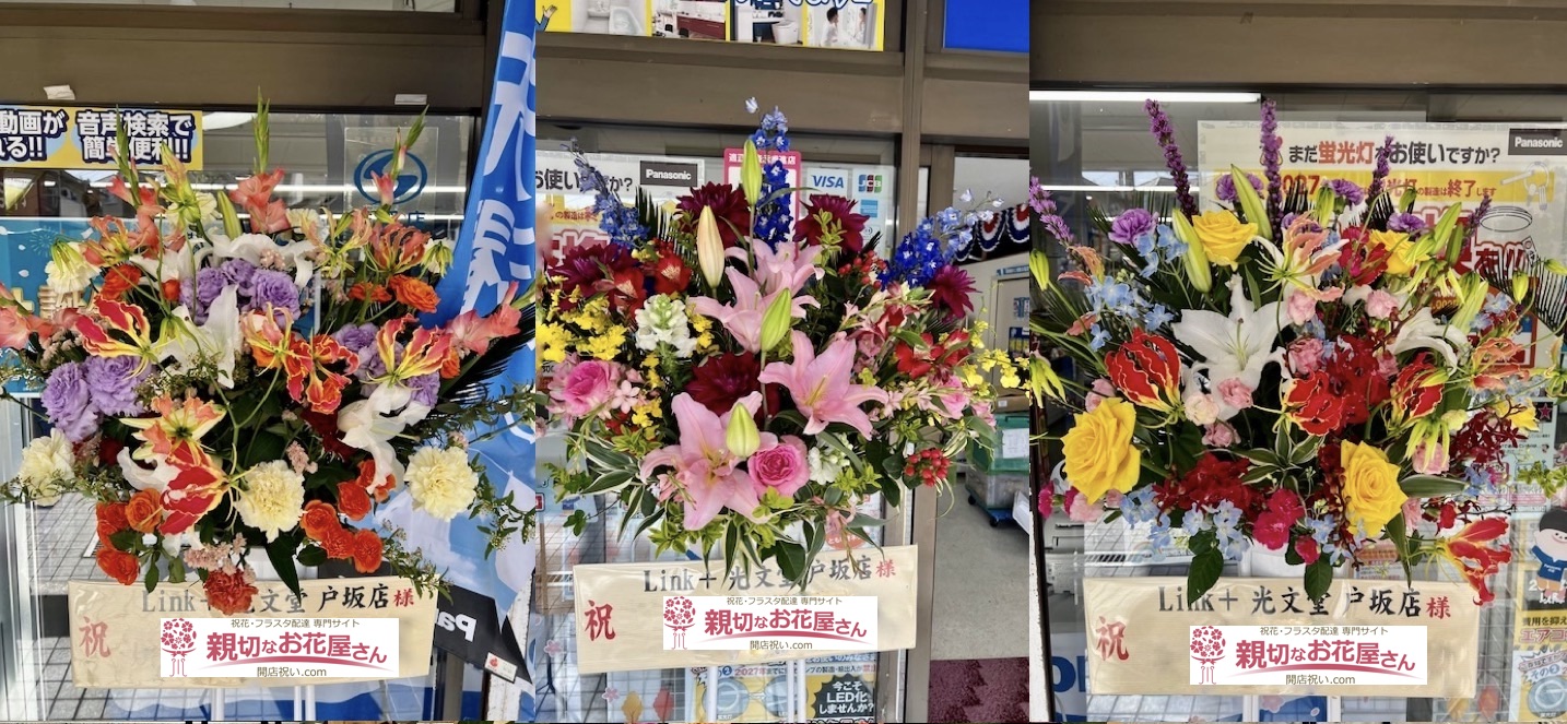 開店祝い花(スタンド花・3基 おまとめ一括複数基)広島市東区 Link+光文堂 戸坂店 様