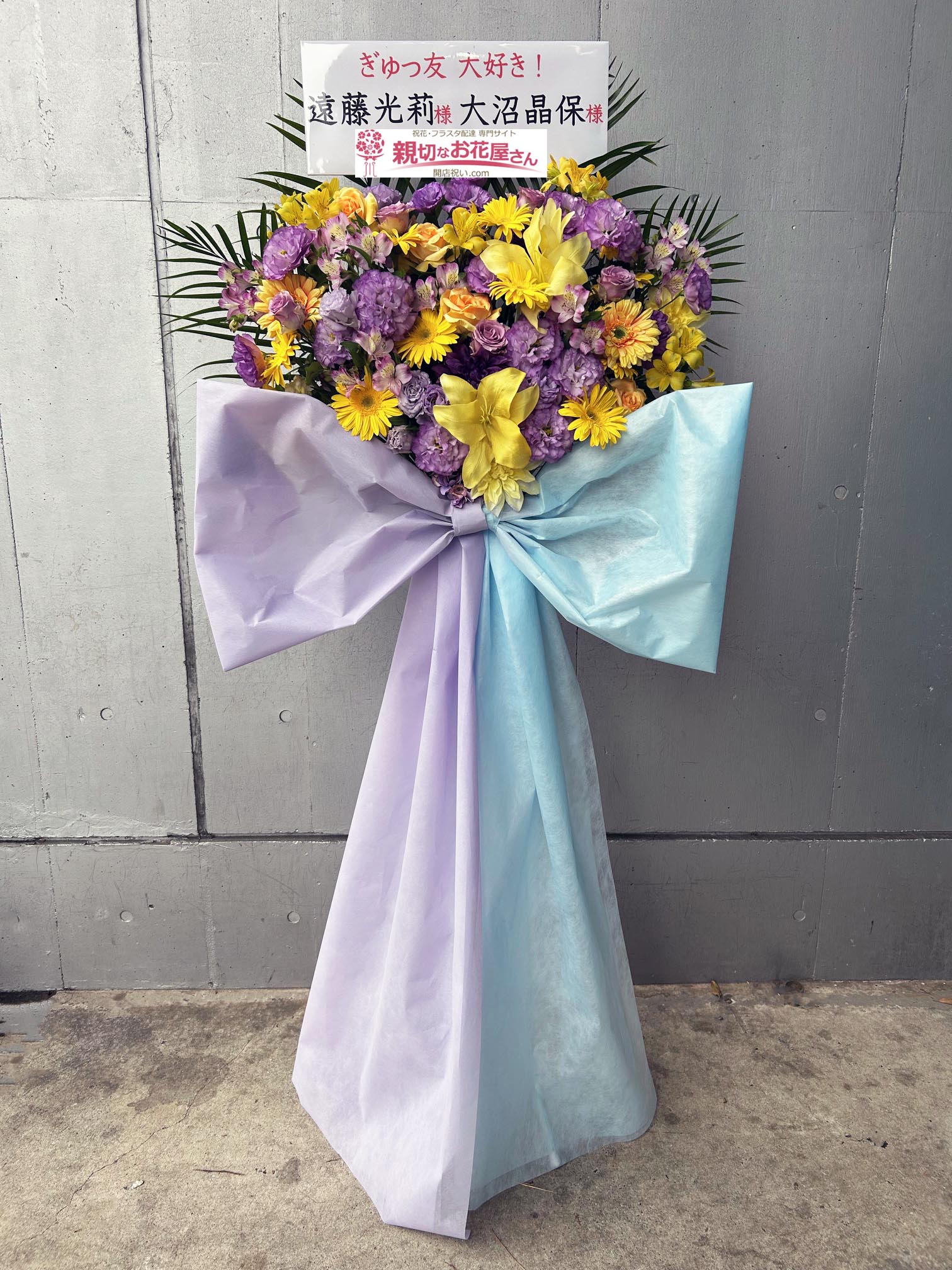 スタンド花ではバルーンやリボンを装飾したりメンバー様のカラーに祝花の色を合わせたり、お好みに合わせて手配可能です。