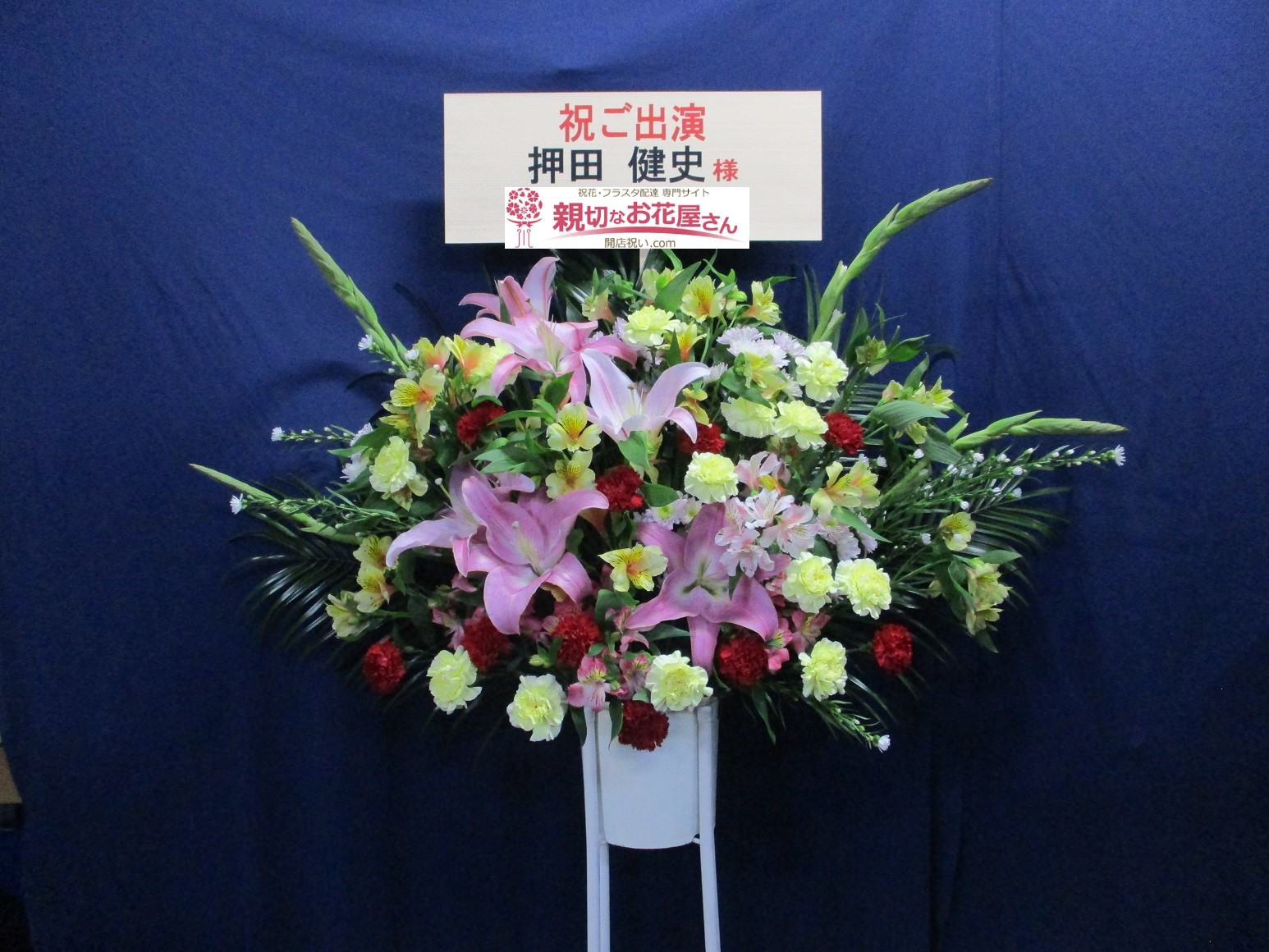 豊島区東池袋 あうるすぽっと 豊島区立舞台芸術交流センター 出演祝いスタンド花 花組芝居「義経千本桜」押田健史様