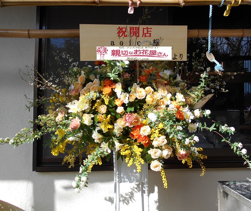 - 開店祝い スタンド花・フラスタ 兵庫県淡路市尾崎 カフェaoie様へ祝花(スタンド花)をお届けいたしました。