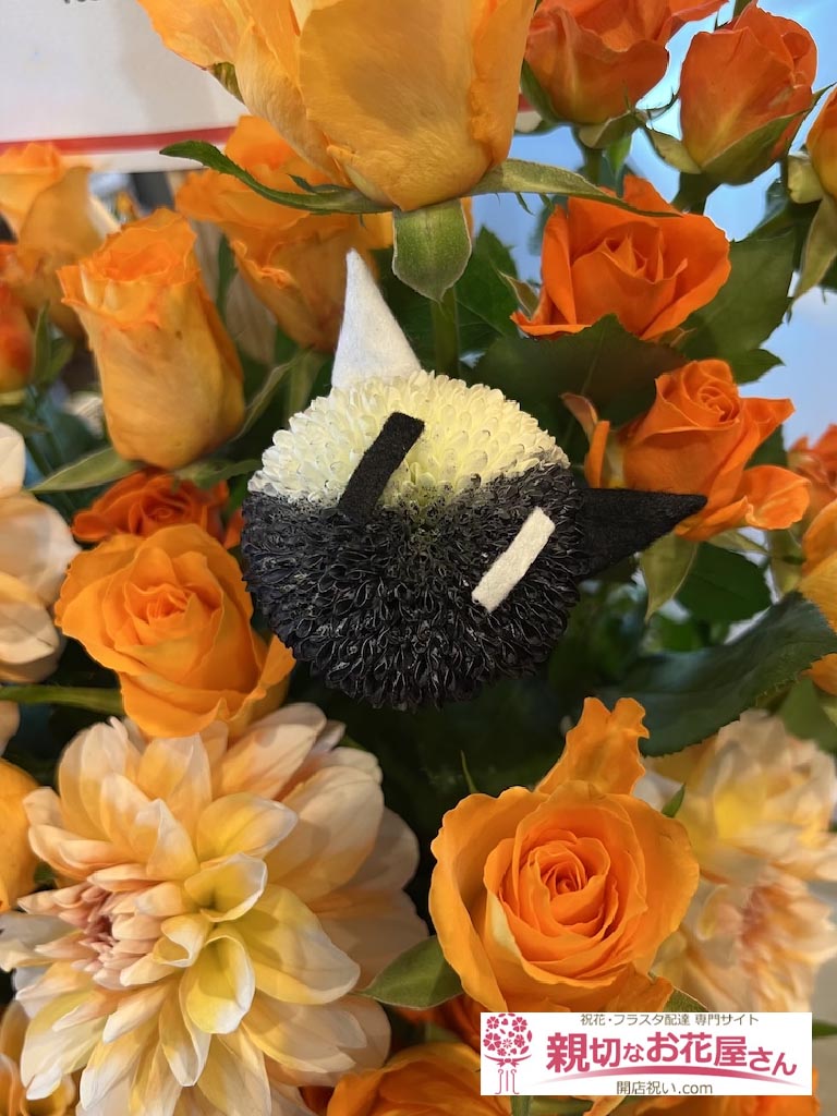 - 山梨県富士吉田市 富士急ハイランド・コニファーフォレスト BanG Dream!(バンドリ!)『RAISE A SUILEN×Morfonica「Mythology Chapter 2」』西尾夕香 様に出演祝い花(アレンジ花)をお届けしました。オレンジの濃淡で色鮮やかなアレンジ花をお作りしました。ピンポンマムで白黒ネコをモチーフにしたお花を作成いたしました。山梨県富士吉田市のお祝い花(アレンジメント花・スタンド花・フラスタ・胡蝶蘭・観葉植物)の手配は親切なお花屋さん(開店祝い.com)にお任せください!