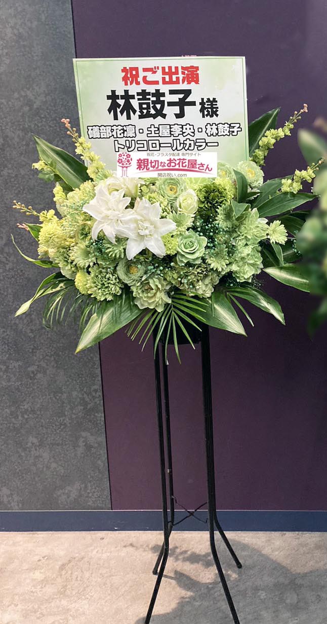 - 【造花×生花】神奈川県横浜市西区 Kアリーナ『 ラブライブ!虹ヶ咲学園スクールアイドル同好会 7th Live! NEW TOKIMEKI 』林鼓子 様 前田佳織里 様に同じ法人様よりそれぞれ1基ずつ出演祝い花(フラスタ)をお届けしました。グリーン系の花材でおまとめし華やかなフラスタをお作りしました。神奈川県横浜市西区のお祝い花(アレンジメント花・スタンド花・フラスタ・胡蝶蘭・観葉植物)の手配は親切なお花屋さん(開店祝い.com)にお任せください!