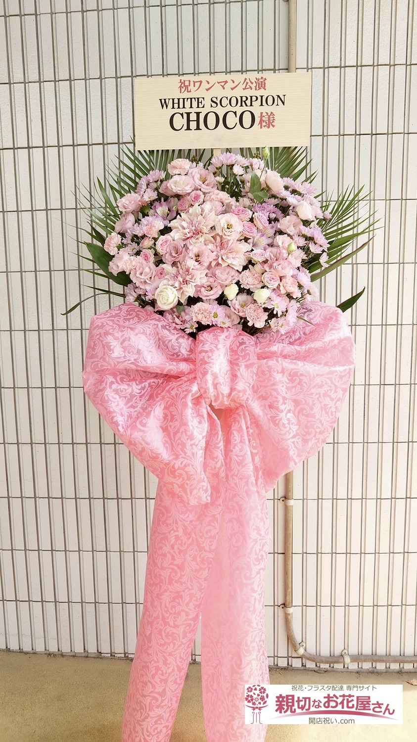 - 【造花×生花】東京都港区港南 品川インターシティーホール『WHITE SCORPION 3rd ONEMANLIVE』WHITE SCORPION CHOCO 様に公演祝い花(フラスタ)をお届けしました。ピンク一色でおまとめしました。同色のロングリボンとの統一感がある華やかなフラスタとなっております。東京都港区港南のお祝い花(アレンジメント花・スタンド花・フラスタ・胡蝶蘭・観葉植物)の手配は親切なお花屋さん(開店祝い.com)にお任せください!