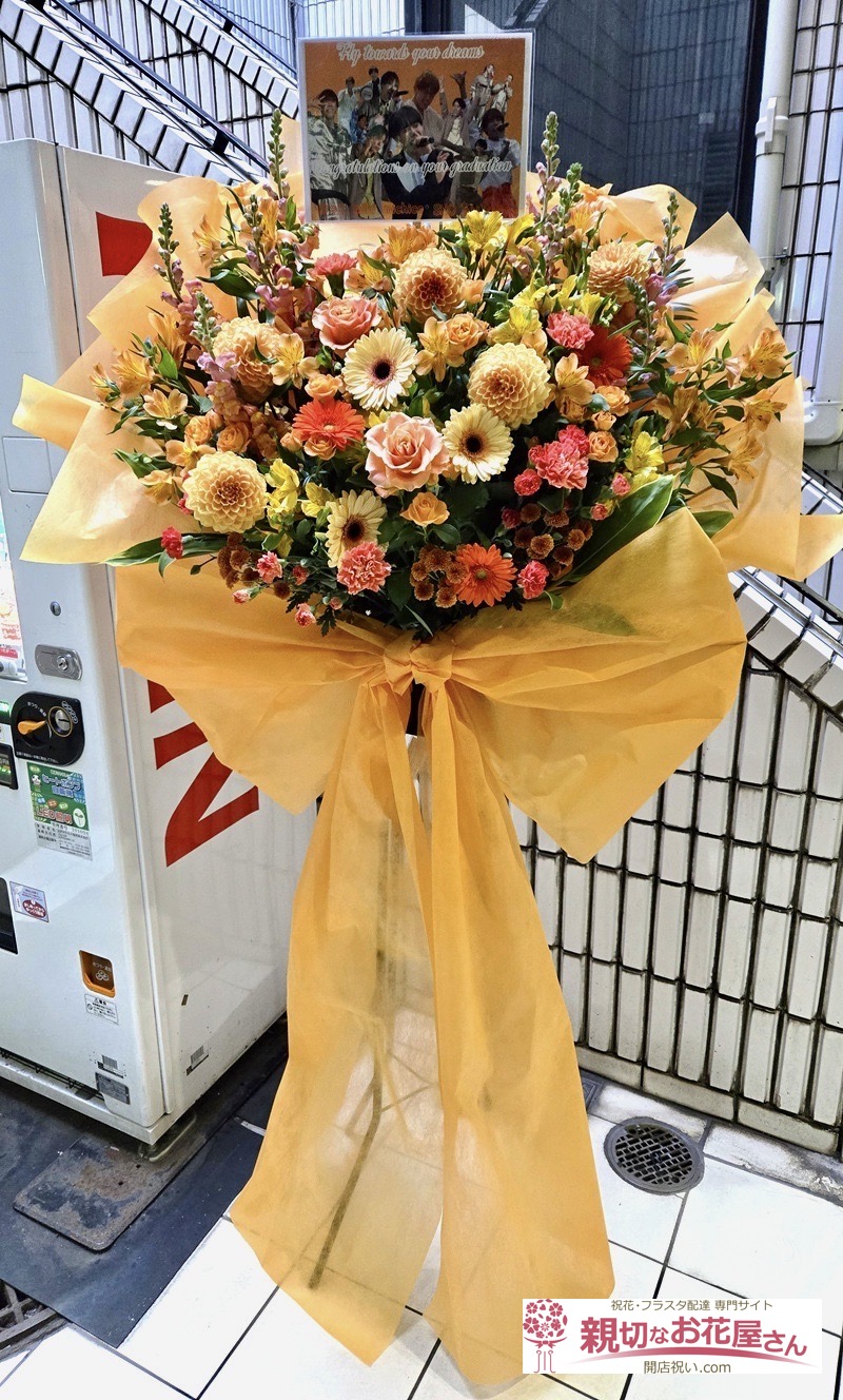 - 茨城県水戸市 club SONIC mito『I-CONNECTION #04 ~PANKUN生誕&卒業ライブ~』会場に祝花(フラスタ)をお届けしました。オレンジ系の花材をメインに明るい暖色系の色味でおまとめしました。花束風のリボンとの統一感があるおしゃれなフラスタとなっております。茨城県水戸市のお祝い花(アレンジメント花・スタンド花・フラスタ・胡蝶蘭・観葉植物)の手配は親切なお花屋さん(開店祝い.com)にお任せください!