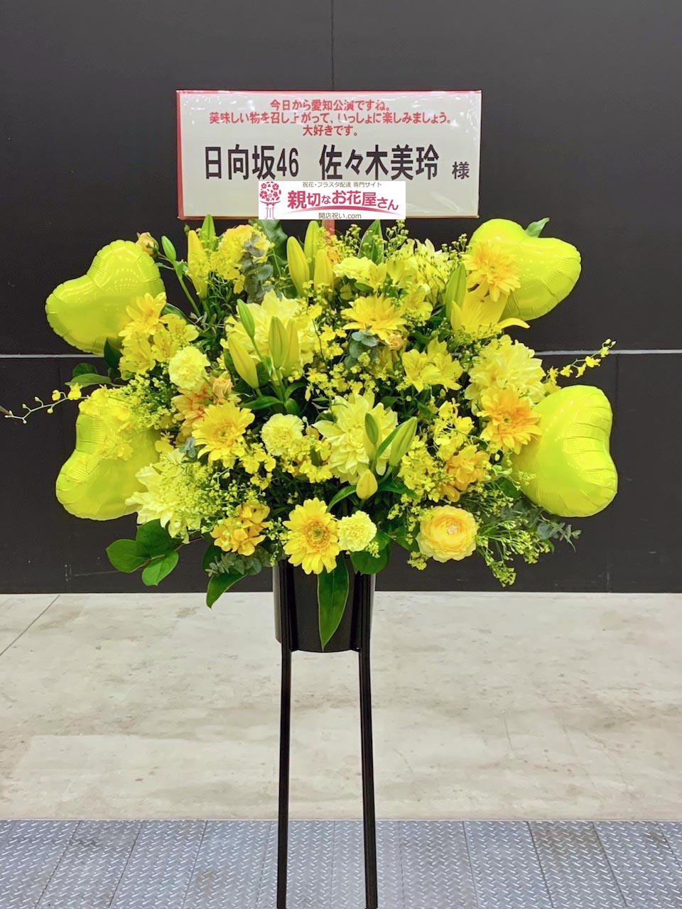 - 【生花×造花】愛知県名古屋市港区 ポートメッセなごや『日向坂46「Happy Magical Tour 2024」』佐々木美玲 様に出演祝い花(フラスタ)をお届けしました。鮮やかな黄色一色で統一されたおしゃれなフラスタとなっております。愛知県名古屋市港区のお祝い花(アレンジメント花・スタンド花・フラスタ・胡蝶蘭・観葉植物)の手配は親切なお花屋さん(開店祝い.com)にお任せください!