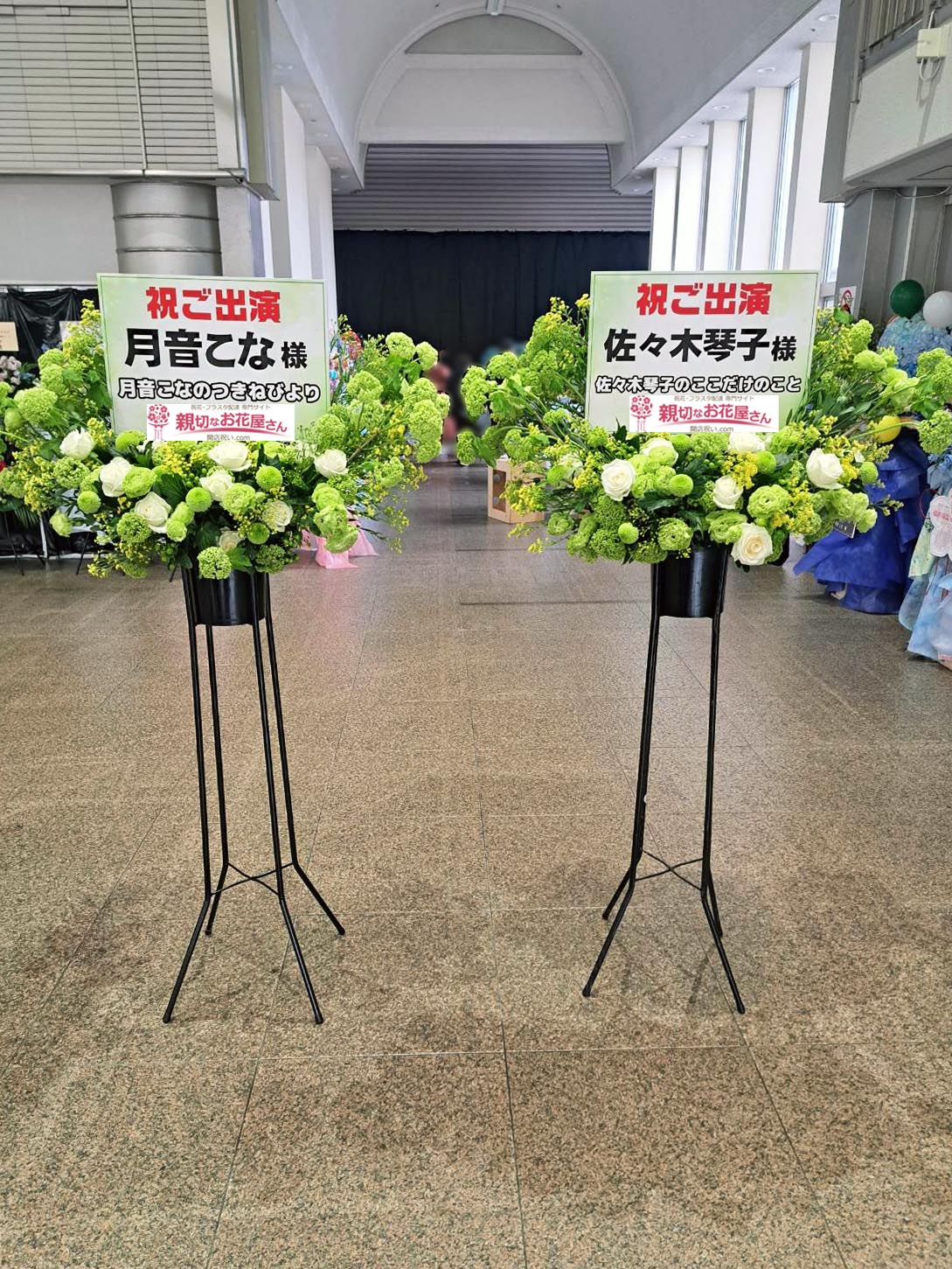 - 【生花×造花】石川県金沢市 石川県産業展示館『ラブライブ!蓮ノ空女学院スクールアイドルクラブ4th Live Dream ~Bloom, The Dream Believers~』月音こな 様 佐々木琴子 様に出演祝い花(スタンド花・2基)をお届けしました。白・黄緑・緑の花材をミックス挿しにしておまとめしました。自然の色味が爽やかなイメージのスタンド花となっております。石川県金沢市のお祝い花(アレンジメント花・スタンド花・フラスタ・胡蝶蘭・観葉植物)の手配は親切なお花屋さん(開店祝い.com)にお任せください!