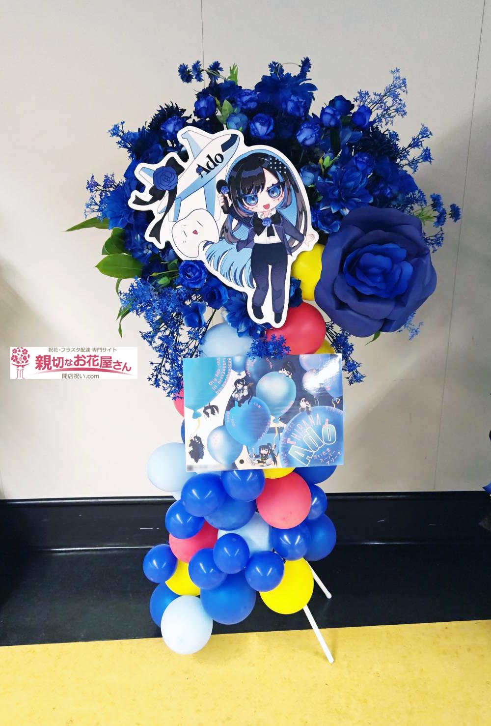 【生花×造花】埼玉県さいたま市中央区 さいたまスーパーアリーナ『Ado WORLD TOUR 2025「Hibana」』Ado 様に公演祝い花(フラスタ)をお届けしました。バラなどの青い花材でおまとめしました。スタンドに螺旋状に装飾したカラフルなバルーンが目を引きます。埼玉県さいたま市中央区のお祝い花(アレンジメント花・スタンド花・フラスタ・胡蝶蘭・観葉植物)の手配は親切なお花屋さん(開店祝い.com)にお任せください!