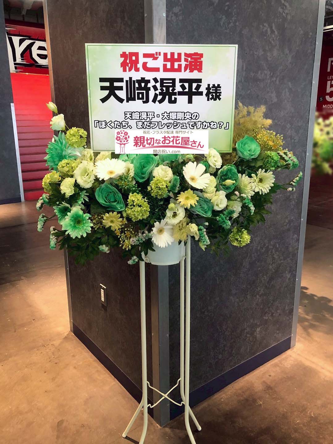 - 【生花×造花】神奈川県横浜市西区 Kアリーナ横浜『THE IDOLM@STER SideM 10th ANNIVERSARY ST@GE ~P@SSION-ING!!!~』天﨑滉平 様に出演祝い花(スタンド花)をお届けしました。黄緑と濃淡それぞれのグリーン系の色合いで爽やかにおまとめしました。神奈川県横浜市西区のお祝い花(アレンジメント花・スタンド花・フラスタ・胡蝶蘭・観葉植物)の手配は親切なお花屋さん(開店祝い.com)にお任せください!