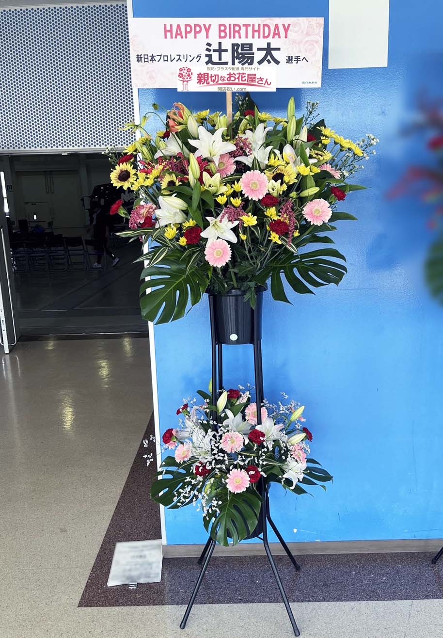 興行祝い花(誕生祝いスタンド花)静岡県富士市 ふじさんめっせ『新日本プロレス 富士大会 Road to DESTRUCTION』辻陽太選手