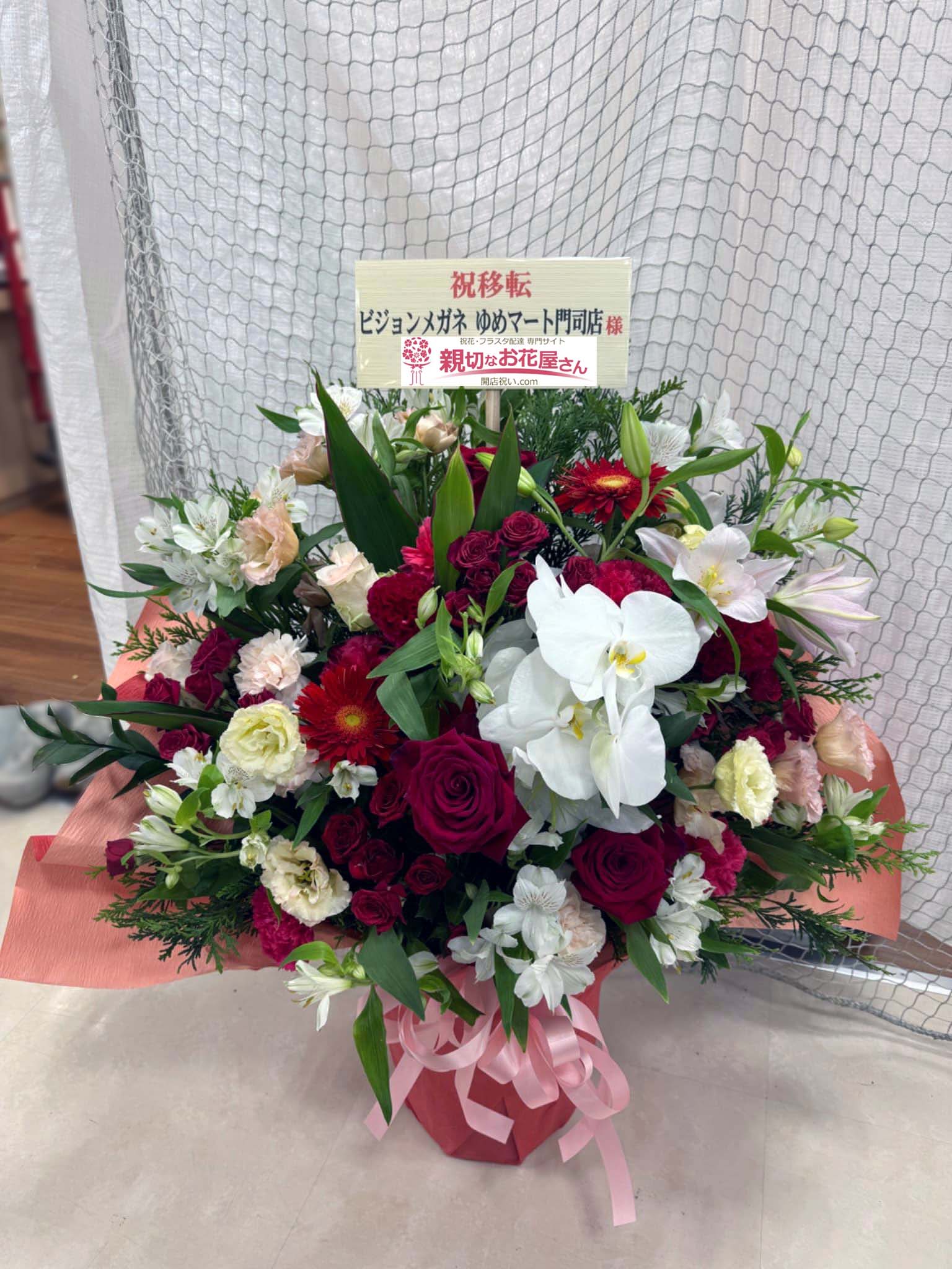 移転祝い花(アレンジ花)福岡県北九州市門司区 ビジョンメガネ ゆめマート門司店 様