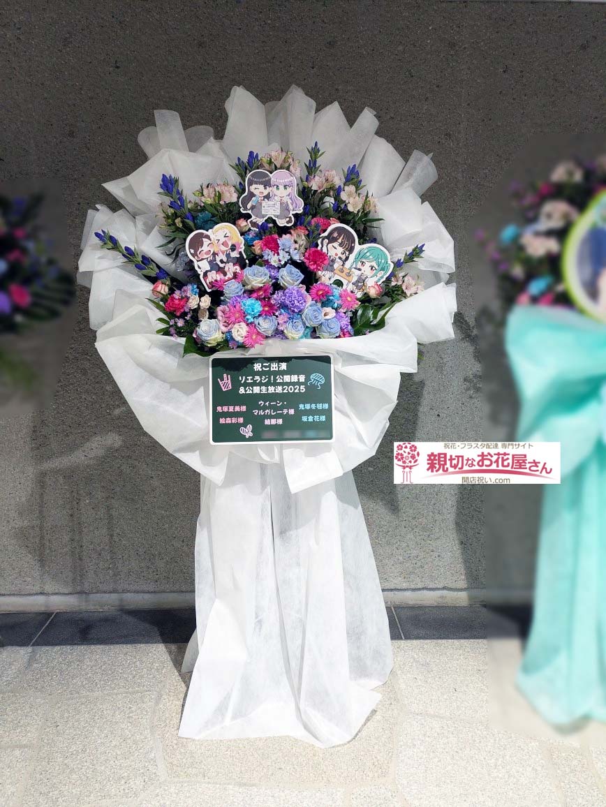 - 『ラブライブ!スーパースター!! Liella! リエラジ!公開録音&公開生放送2025』牛久市中央生涯学習センター(牛久市)鬼塚夏美様 絵森彩様 ウィーン・マルガレーテ様 結那様様 鬼塚冬毬様 坂倉花様に出演祝い花(フラスタ)をお届けしました。ピンク・紫・水色の三色の花材をミックス挿しにしておまとめしました。花束風の白い装飾の華やかさが目を引きます。牛久市のお祝い花(アレンジメント花・スタンド花・フラスタ・胡蝶蘭・観葉植物)の手配は親切なお花屋さん(開店祝い.com)にお任せください!