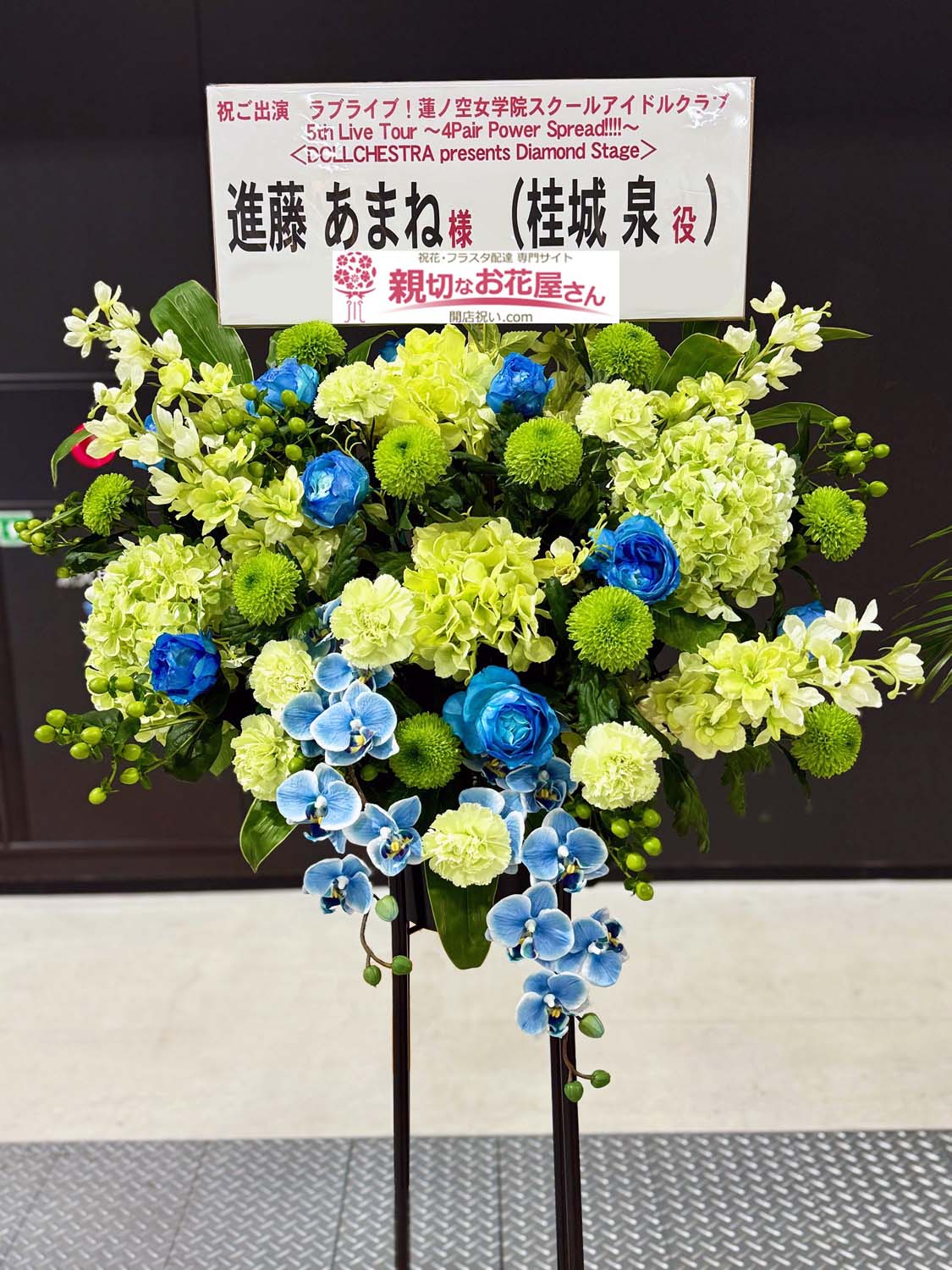 進藤あまね様(桂城泉役)『ラブライブ!蓮ノ空女学院スクールアイドルクラブ 5th Live Tour ~4Pair Power Spread!!!!~』AICHI SKY EXPO(常滑市)出演祝い花(スタンド花)【生花×造花】