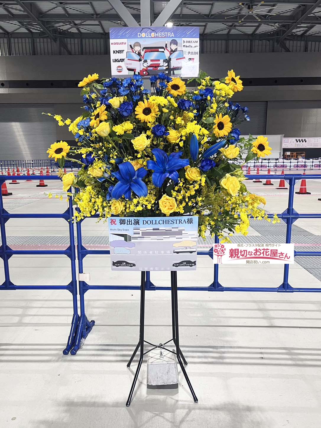 - 『ラブライブ!蓮ノ空女学院スクールアイドルクラブ 5th Live Tour ~4Pair Power Spread!!!!~』AICHI SKY EXPO(常滑市)DOLLCHESTRA 様に出演祝い花(フラスタ)【生花×造花】をお届けしました。互いを引き立て合う青と黄色の爽やかなコントラストが華やかさを演出しています。常滑市のお祝い花(アレンジメント花・スタンド花・フラスタ・胡蝶蘭・観葉植物)の手配は親切なお花屋さん(開店祝い.com)にお任せください!