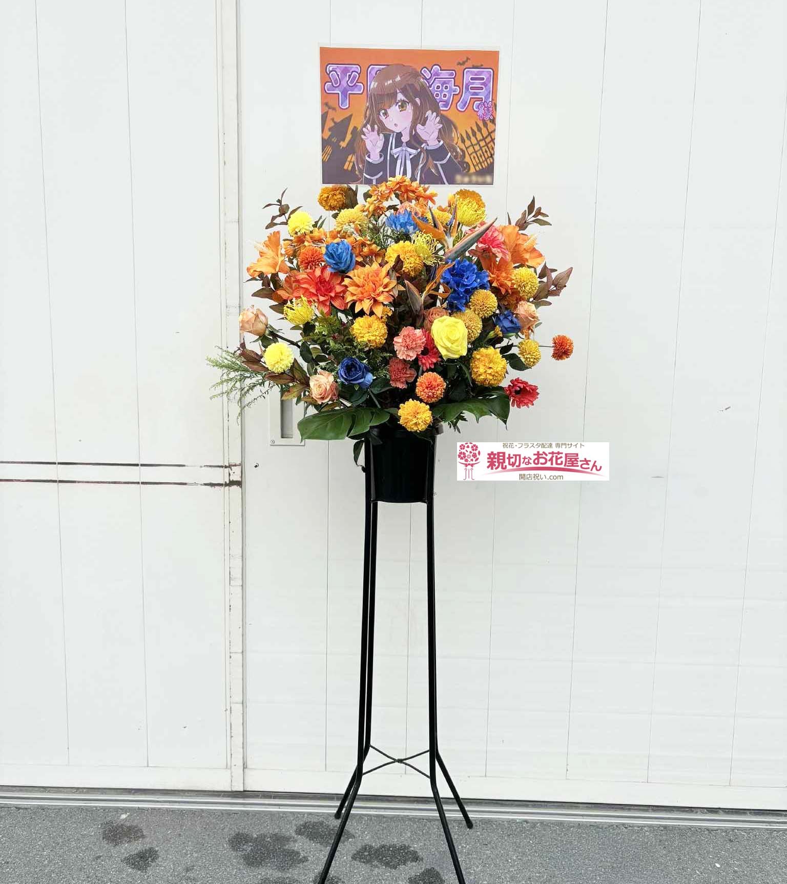 - 『日向坂46 15thシングル『お願いバッハ!』発売記念「リアルミート&グリート」「リアルサイン会」』京都パルスプラザ(京都市伏見区)平岡海月 様に祝花(フラスタ)【生花×造花】をお届けしました。オレンジ色をメインカラーとしておまとめしました。アクセントカラーとして青い花材を散りばめた華やかなフラスタとなっております。京都市伏見区のお祝い花(アレンジメント花・スタンド花・フラスタ・胡蝶蘭・観葉植物)の手配は親切なお花屋さん(開店祝い.com)にお任せください!