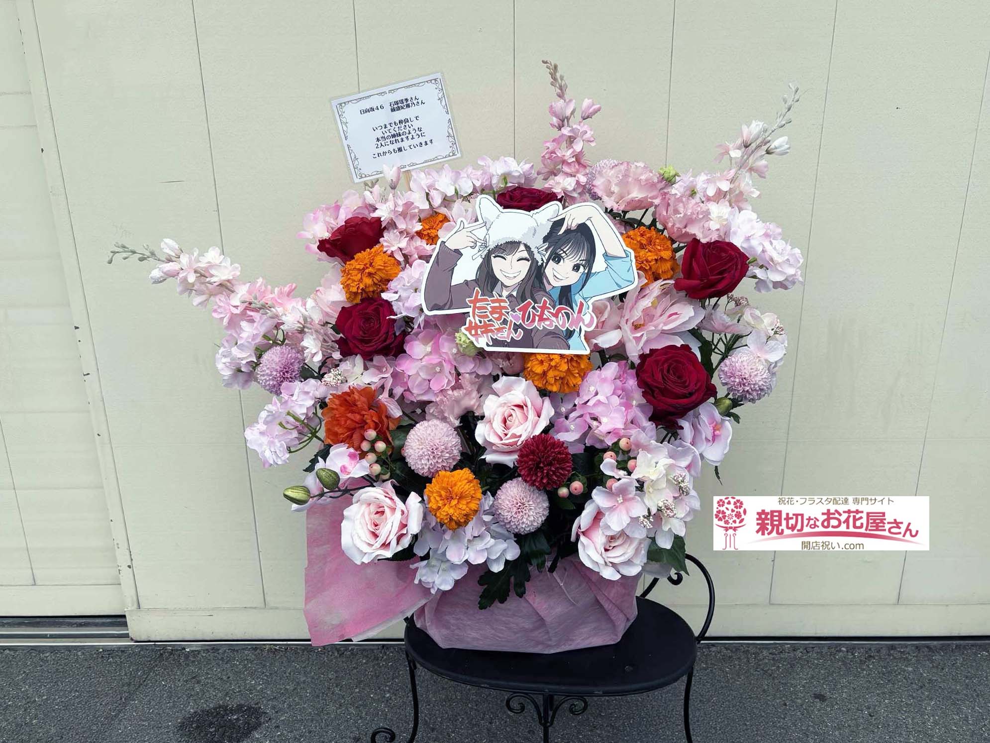 - 『日向坂46 15thシングル『お願いバッハ!』発売記念「リアルミート&グリート」「リアルサイン会」』京都パルスプラザ(京都市伏見区)石塚瑶季 様 蔵盛妃那乃 様に祝花(アレンジ花)【生花×造花】をお届けしました。淡いピンクの花々に色鮮やかなオレンジと赤の花材を散りばめて可憐なアレンジ花をお作りしました。京都市伏見区のお祝い花(アレンジメント花・スタンド花・フラスタ・胡蝶蘭・観葉植物)の手配は親切なお花屋さん(開店祝い.com)にお任せください!