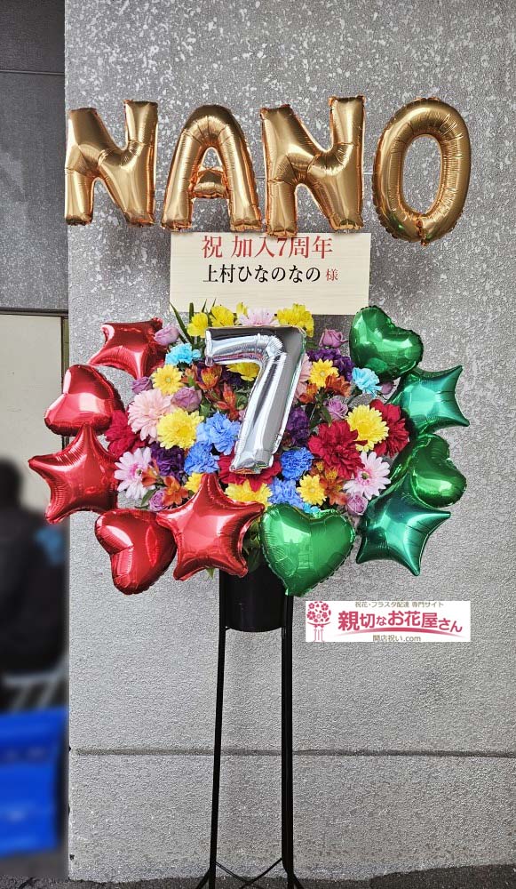 - 『日向坂46 15thシングル『お願いバッハ!』発売記念「リアルミート&グリート」「リアルサイン会」』京都パルスプラザ(京都市伏見区)上村ひなの 様に祝花(フラスタ)【生花×造花】をお届けしました。数色をミックスしておまとめしました。大きなアルファベットバルーンなどたくさんのバルーン装飾で可愛さをプラスしています。京都市伏見区のお祝い花(アレンジメント花・スタンド花・フラスタ・胡蝶蘭・観葉植物)の手配は親切なお花屋さん(開店祝い.com)にお任せください!