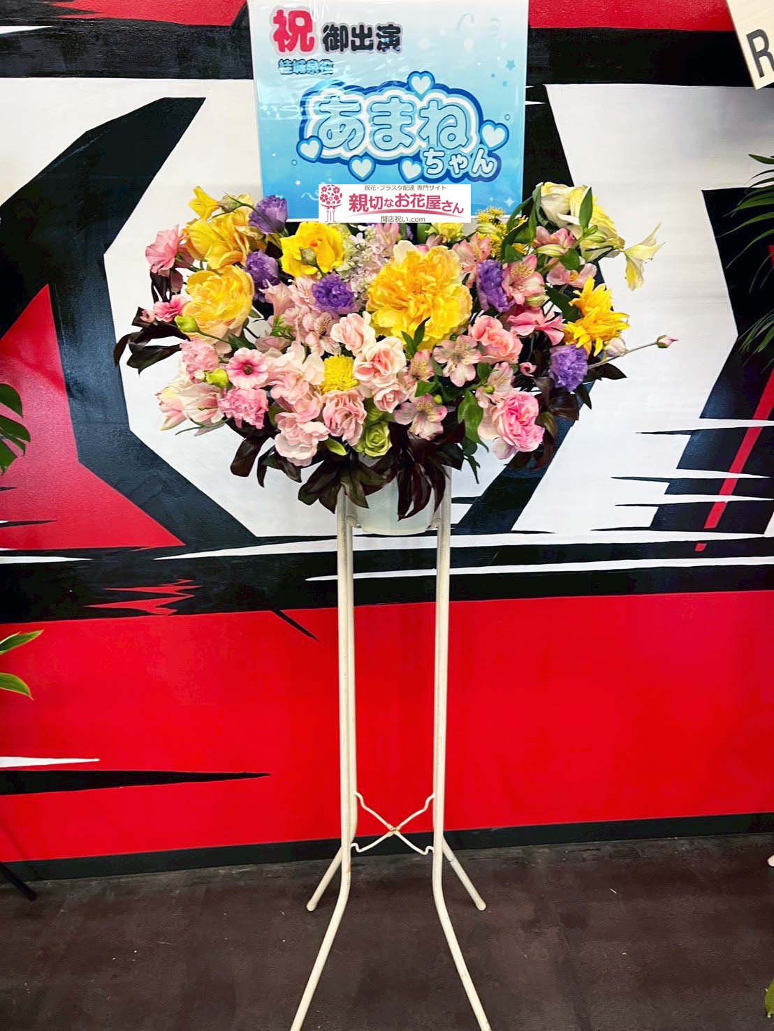 - 『ラブライブ!蓮ノ空女学院スクールアイドルクラブ 5th Live Tour~4Pair Power Spread!!!!~』Kアリーナ横浜(横浜市西区)進藤あまね 様に出演祝い花(フラスタ)【生花×造花】をお届けしました。ピンク・紫・黄色の色味でおまとめしました。キュートなイラストパネルが目を引きます。横浜市西区のお祝い花(アレンジメント花・スタンド花・フラスタ・胡蝶蘭・観葉植物)の手配は親切なお花屋さん(開店祝い.com)にお任せください!