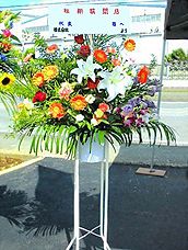 - 開店のお祝いのお花です。明るい色合いのお花を使ったボリュームたっぷりのスタンド花です。