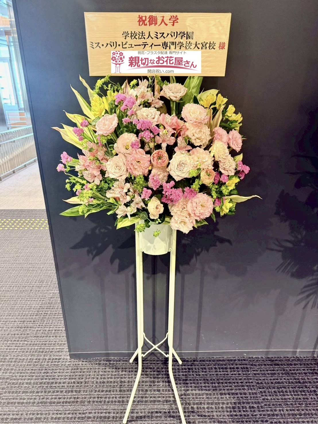 入学式祝い花(スタンド花)さいたま市大宮区 学校法人ミスパリ学園 ミス・パリ・ビューティー専門学校 大宮校 様
