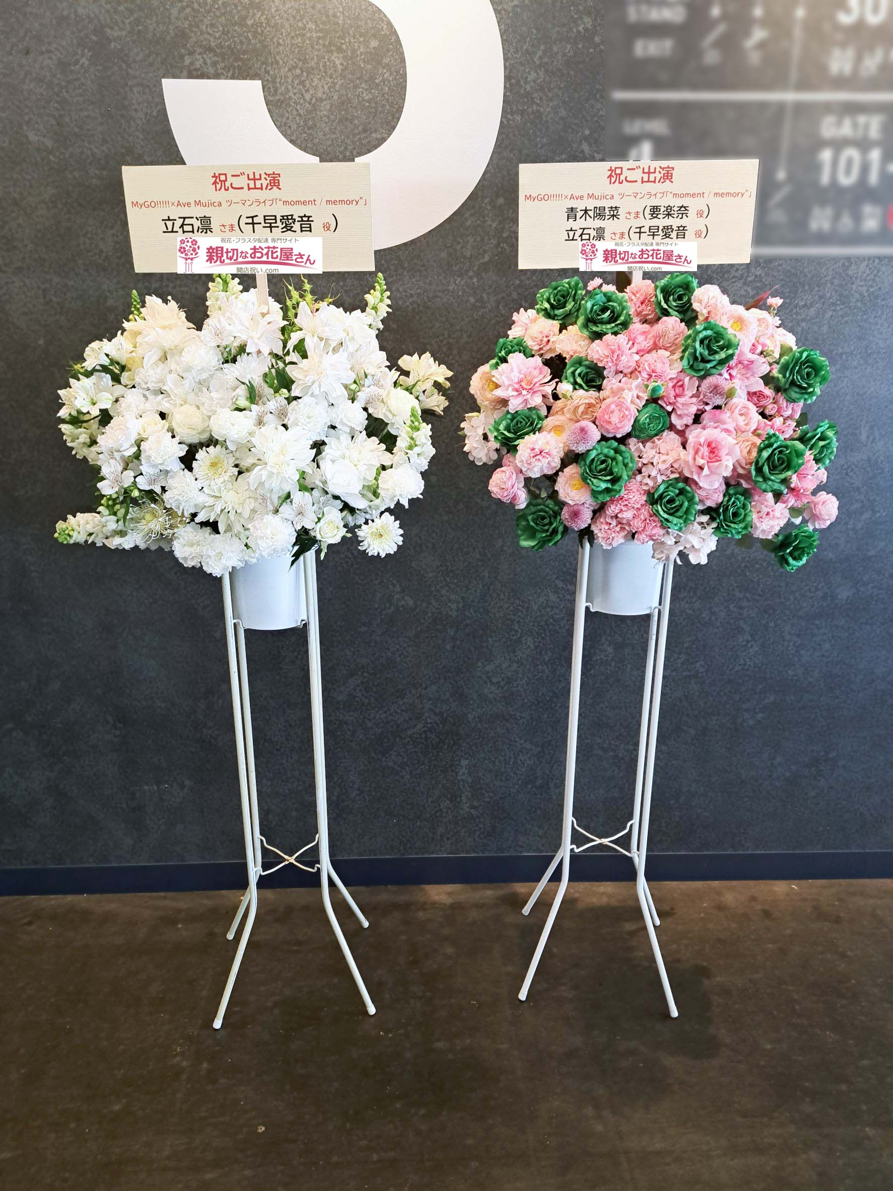 立石凛 様(千早愛音 役)青木陽菜 様(要楽奈 役)『MyGO!!!!! x Ave Mujica ツーマンライブ「“moment / memory”」』Kアリーナ横浜(横浜市西区)出演祝い花(スタンド花・まとめて一括・2基)【生花×造花】