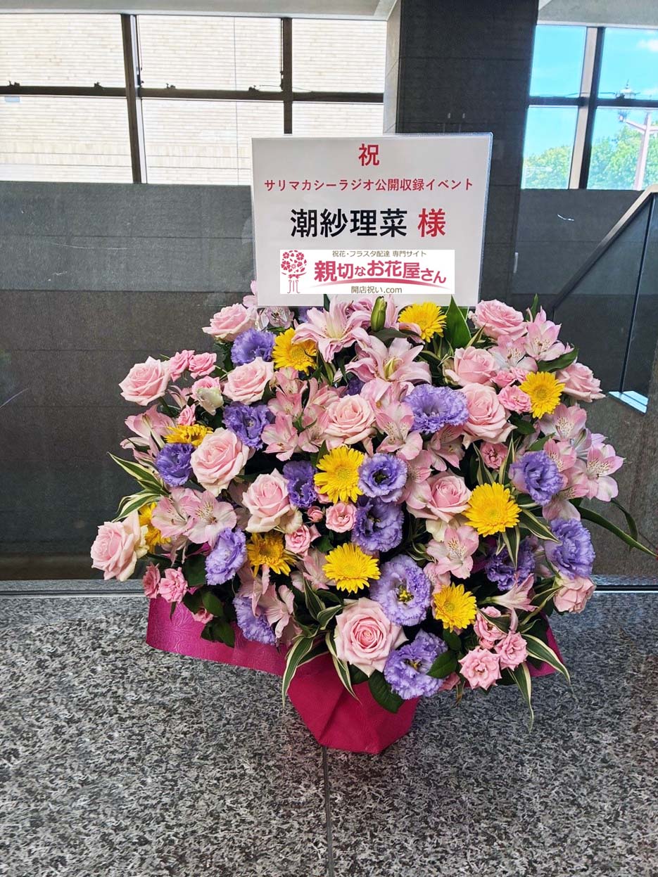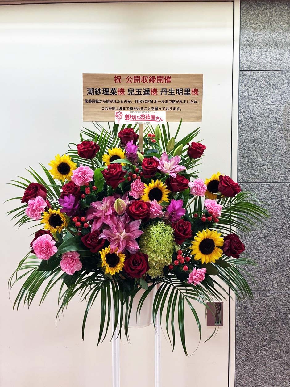 【生花×造花】祝花(スタンド花)東京都千代田区麹町 TOKYO FMホール『潮紗理菜のサリマカシーラジオ公開収録イベント』潮紗理菜 様 兒玉遥 様 丹生明里 様