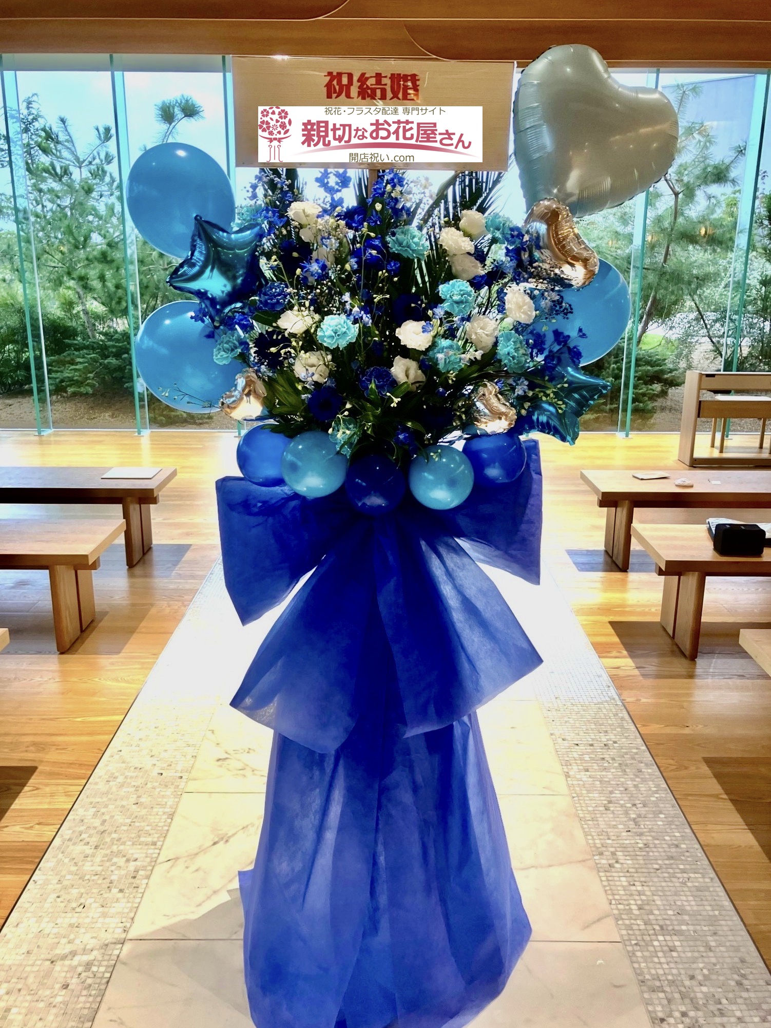 祝花(結婚式祝い花・バルーンリボン付スタンド花)福島市 アマンダンアイル 新婦様お届け
