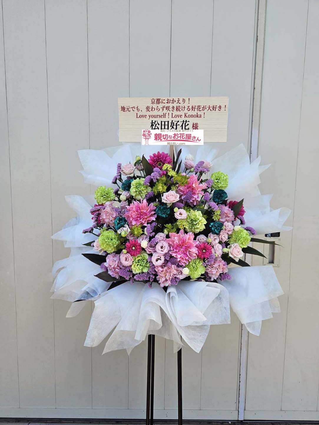 【生花×造花】祝花(スタンド花)京都府京都市伏見区 京都パルスプラザ『日向坂46 14thシングル リアルミート&グリート(個別トーク会)』松田好花様 森本茉莉様 小西夏菜実様 竹内希来里様 平岡海月様 蔵盛妃那乃様