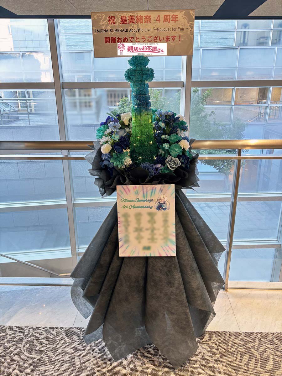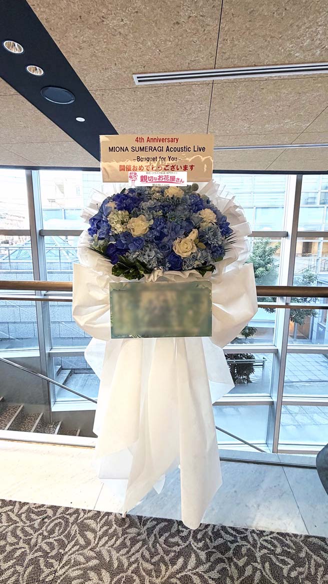 【生花×造花】公演祝い花(フラスタ)東京都八王子市 八王子市芸術文化会館『MIONA SUMERAGI Acoustic Live ~Bouquet for You~』皇美緒奈 様